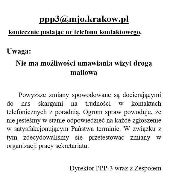 Linki do spotkań zostały rozesłane na adresy mailowe Państwa placówek. W przypadku pytań prosimy o kontakt mailowy: ppp3@mjo.krakow.pl